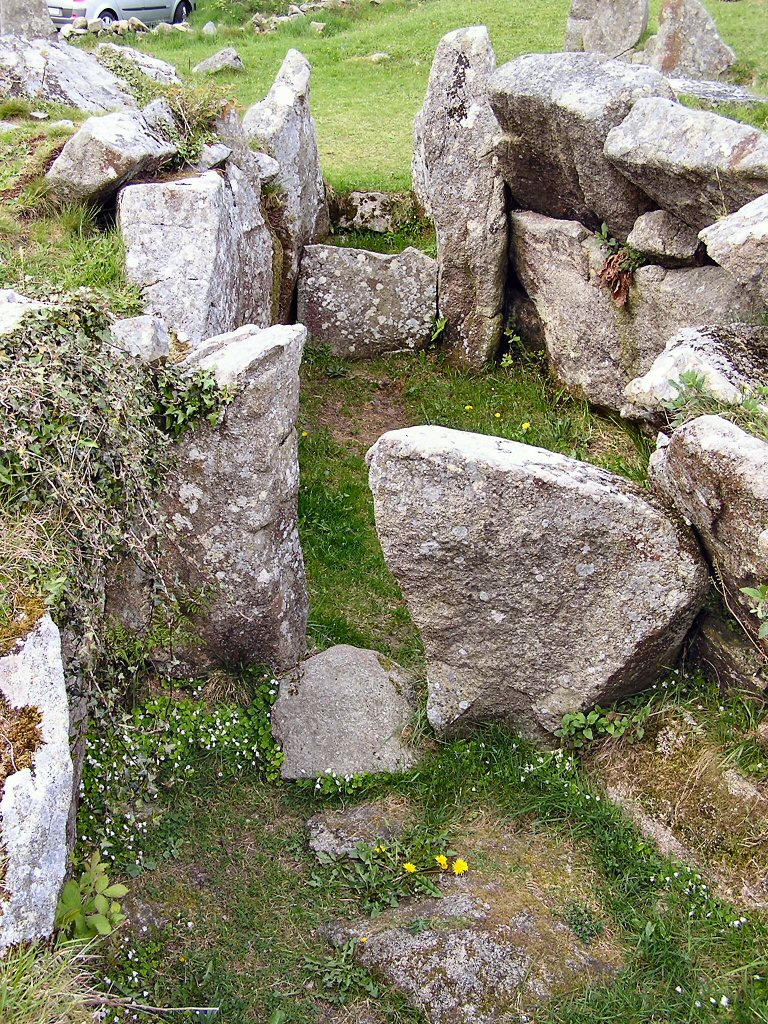 There are pronounced jambs dividing the chambers and parts of the corbelled roof survive on the left as the