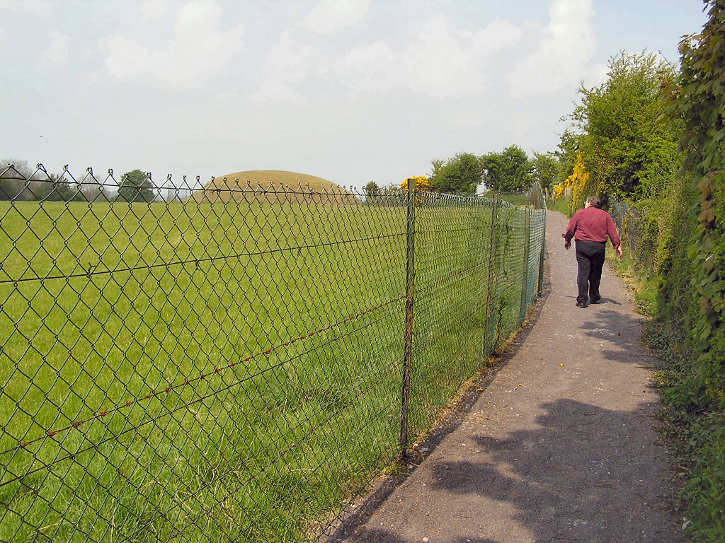 left pointing to the paved track across the road (Fourknocks mound is on the right). The tumulus is up this short
