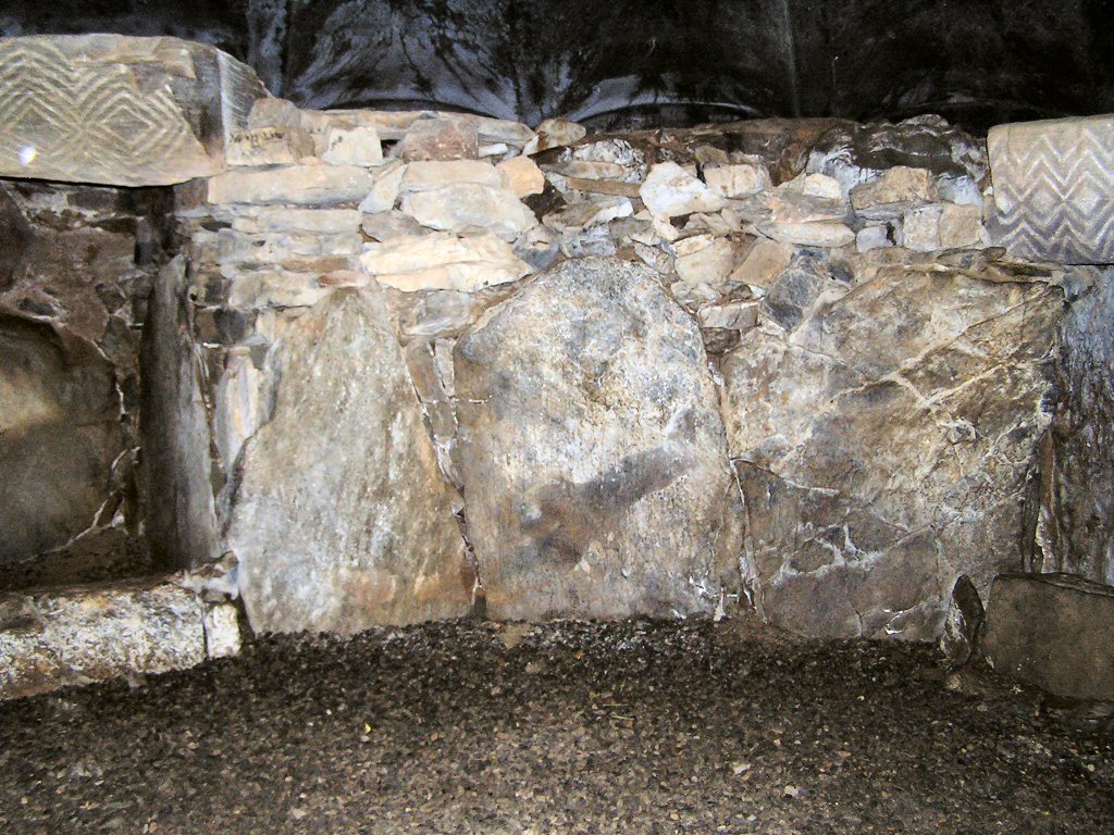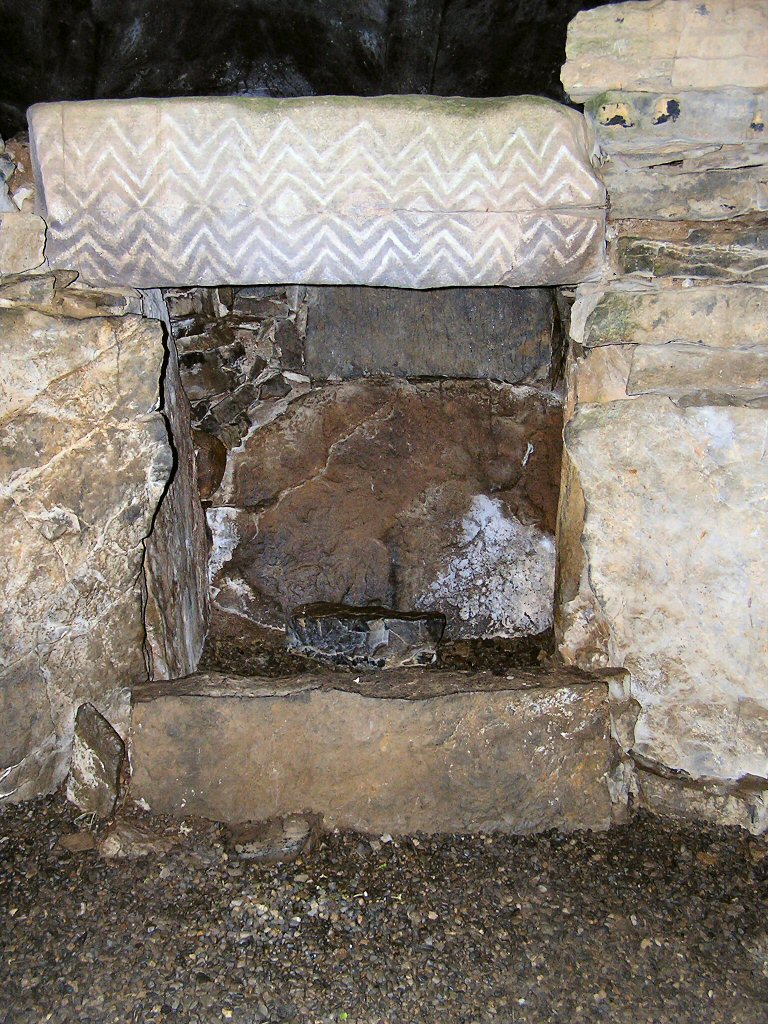 Four of these kists, inserted into the cairn of the tomb contained the crouched burials of children. One cist