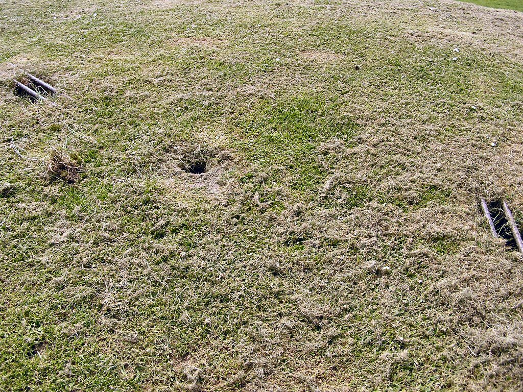 excavation a concrete roof was placed over the chamber for protection. This sodded dome has been thoughtfully