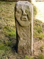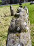 On the narrow edge facing away from the church drive is a grotesque head in relief, and a panel of interlace filling