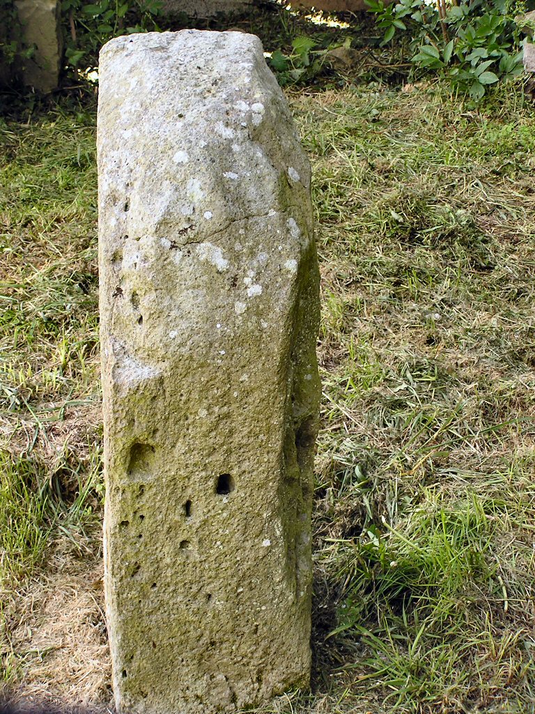 depiction of a cleric - is 1.05 meters high, o.39 wide and 0.23 thick. Facing the church on the broad side of this