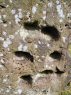are at least 12 cup-shaped hollows on the side of the slab that faces the cemetery wall. These are arranged roughly