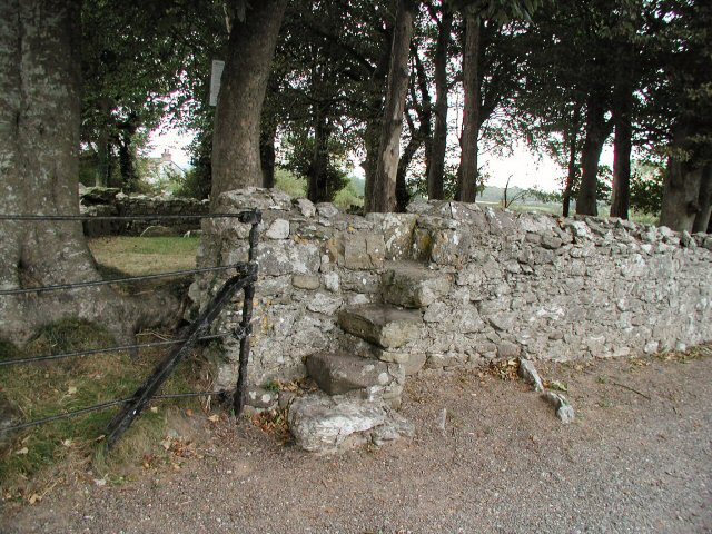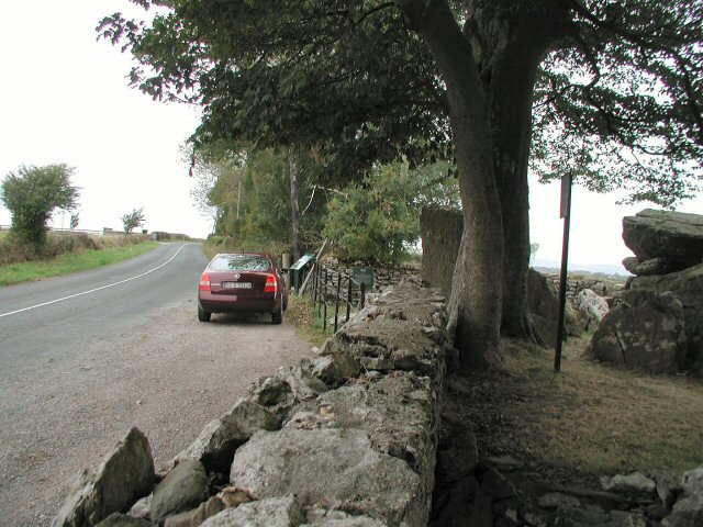 actually abuts the road behind a small wall. It is well-signposted with a small lay-by