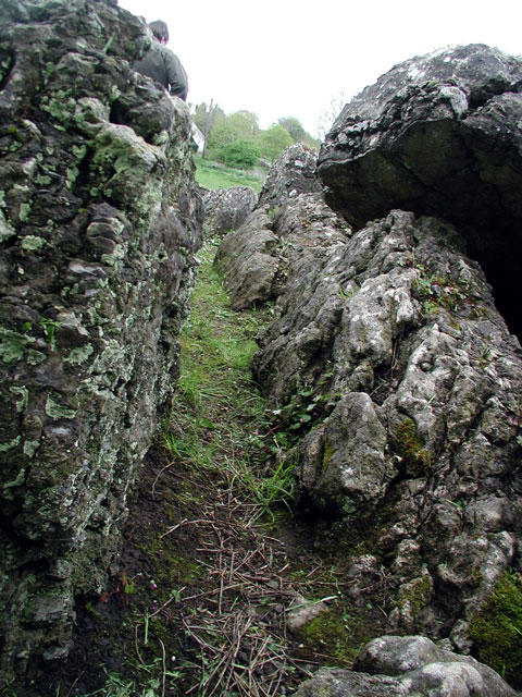 The wedge tomb (also known as the "Giant's Grave") is on the a slope of a low hill about