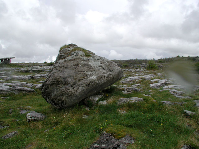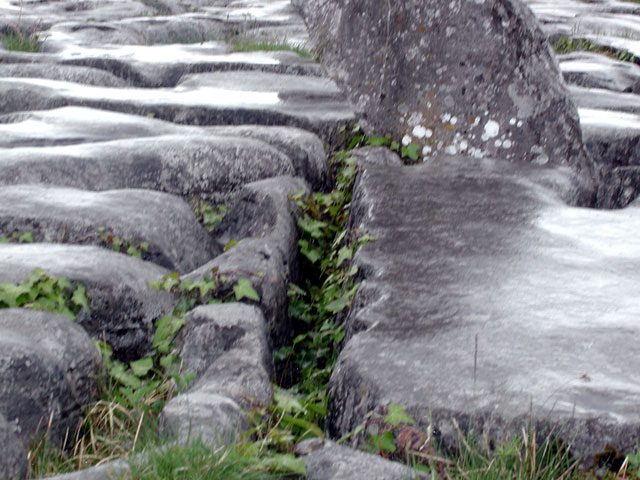 prominently above the limestone pavement of clints (blocks) and grykes (crevices) resulting from eons of
